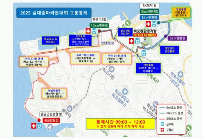 또한 목포해상케이블카에서 대반동 온금근린공원 방향은 일방통행으로 운영되며, 당일 오전 일부 시내버스 운행도 제한될 예정이다. 자세한 사항은 목포시 누리집을 통해 확인할 수 있다.