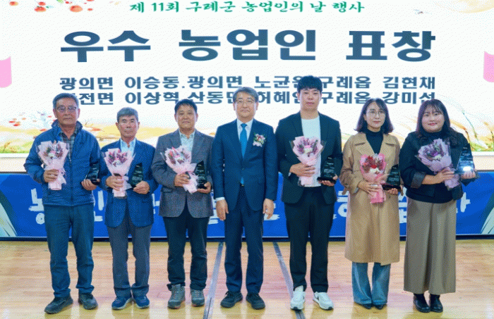 김순호 구례군수는 축사를 통해 “기후변화 등 어려운 여건 속에서도 구례 농업의 희망을 이어온 농업인들께 감사드리며, 지속가능한 농업 기반 구축과 농업인 소득 향상을 위해 적극적으로 지원하겠다”고 밝혔다.