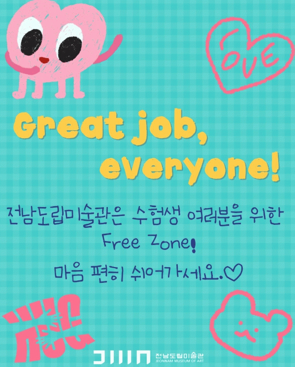 이지호 전남도립미술관장은 “오랜 시간 노력한 수험생들이 예술을 통해 잠시 마음의 여유를 찾고 새로운 시작을 준비하길 바란다”며 “전남도립미술관이 그 여정에 함께하는 따뜻한 문화공간이 되길 기대한다”고 말했다.