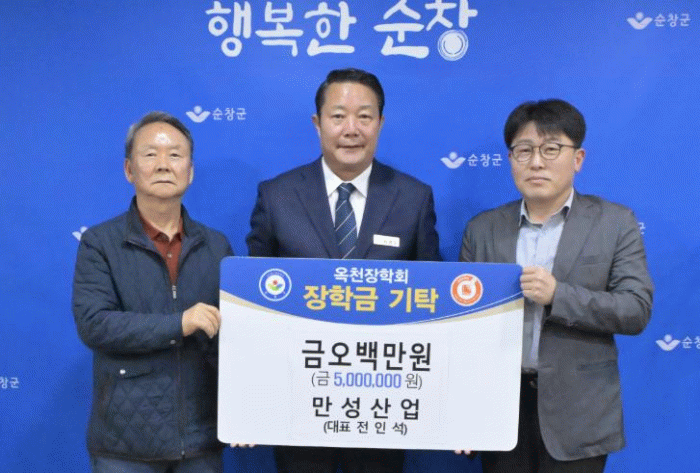 만성산업은 순창군 동계면에 위치한 골재 생산업체로, 평소에도 지역사회 발전에 깊은 관심을 가져왔으며, 2023년과 2024년에 이어 올해까지 3년 연속 장학금을 기탁하며 꾸준한 지역사랑을 실천하고 있다.