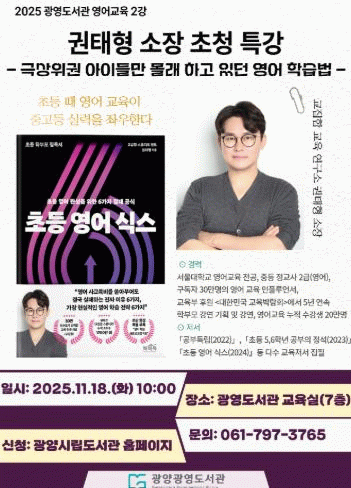 김현숙 도서관과장은 “이번 강연이 영어교육에 관심 있는 학부모들에게 실질적인 도움이 될 것으로 기대한다”며 “많은 관심과 참여를 바란다”고 말했다.