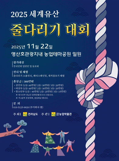 세계유산 줄다리기 경연대회는 전남도농업박물관이 주최하는 주요 문화 행사로, 농업과 공동체 정신의 가치를 널리 알리는 중요한 기회이자 뜻깊은 축제의 장이 될 전망이다.