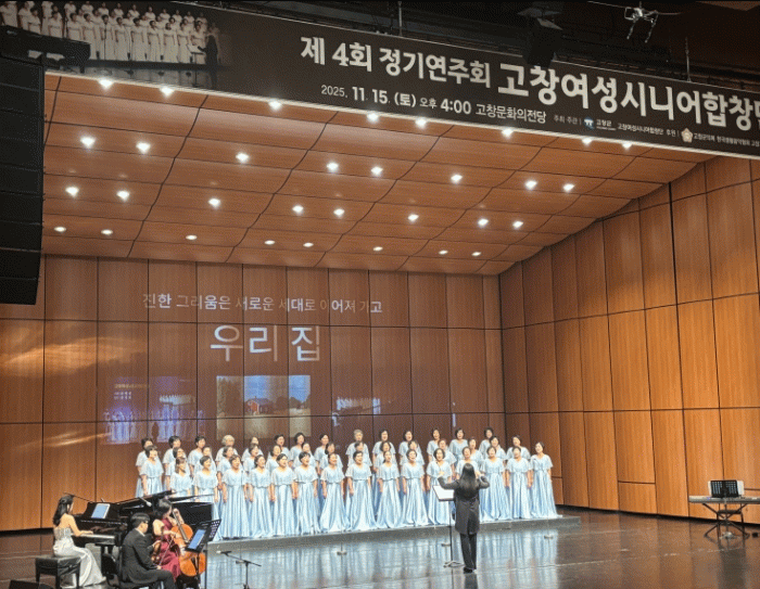 이날 ‘섬집아기’를 시작으로 ‘우리의 사랑이 필요한거죠’, ‘우리 집’ 등 9곡의 공연을 펼쳤으며 마지막 곡으로 모두 다 함께 부른 ‘아름다운 고창’은 서로 다른 목소리가 모여 아름다운 하나의 소리가 만들어지는 모습이 서로를 존중하고 이해하는 아름다운 세상이 되기를 소망하는 고창여성시니어합창단원들의 바람이 담겨 있는 감동의 메시지로 전해졌다.