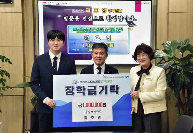 정성주 이사장은 “신임 공무원으로서의 첫 출발을 진심으로 축하하며, 보내주신 따뜻한 마음이 담긴 기탁금은 지역 학생들이 김제의 미래를 이끌 인재로 성장할 수 있도록 뜻깊게 활용하겠다”며 “이번 사례가 지역 청년들이 서로의 성장을 응원하고 함께 발전하는 선순환의 계기가 되길 바란다”고 말했다.