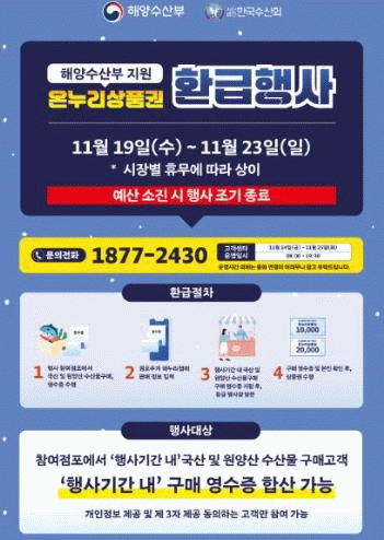 특히 김장철에는 젓갈류, 생선류 등 수산물 소비가 크게 늘어 가격 부담이 가중되는 시기인 만큼, 이번 환급행사가 시민들의 겨울철 식탁 준비에 실질적인 도움이 될 전망이다.