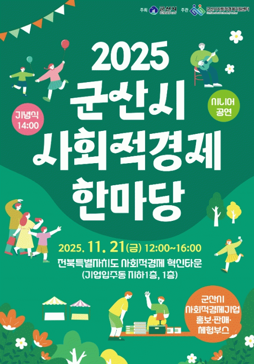 군산시 이헌현 일자리경제과장은 “사회적경제는 단순한 기업 활동이 아니라, 돌봄과 연대, 상생의 가치를 실천하는 새로운 경제 모델.”이라며 “이번 한마당이 지역 사회의 따뜻한 변화를 이끄는 계기가 되길 바란다.”라고 전했다.