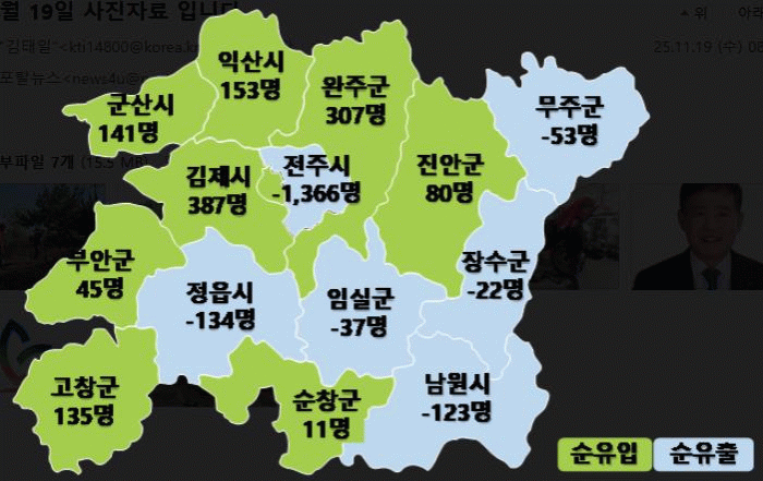 또한 1분기 814명, 2분기 440명, 3분기 387명 등 올해 분기별 순유입 1위를 달성하며, 3분기까지 누적 1,641명이 김제로 전입한 것으로 나타났다.