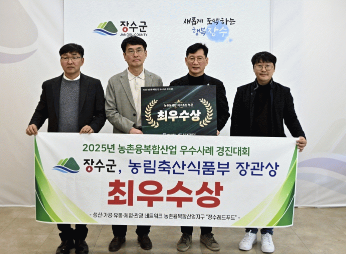 이번 수상으로 장수군은 2026년도 농촌공간정비사업(농촌특화지구형) 및 농촌크리에이투어 지원사업 공모 시 가점을 확보하게 되어 군이 구축해 온 레드푸드 기반의 융복합 전략이 향후 지역 농업과 먹거리산업, 관광산업 확충 및 지역경제 활성화에 큰 탄력을 받을 것으로 기대된다.