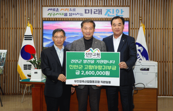 전춘성 진안군수는 “진안에 지속적인 관심과 사랑을 보내주신 무진장축산농협 임직원분들께 진심으로 감사드린다”며 “기탁해주신 소중한 기부금은 진안군민의 복리 증진과 지역 발전을 위해 소중히 사용하겠다”고 전했다.