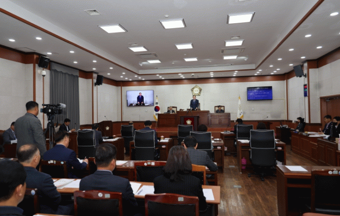 김재승 의장은 개회사를 통해“이번 정례회는 2025년을 마무리하는 마지막 회기로서, 지난 1년의 군정 운영을 되돌아보고 새해의 발전 방향을 설계하는 매우 중요한 회기”임을 강조하며, “각 사업의 필요성과 효율성을 면밀히 검토하여 재정 건전성과 지역 균형 발전이라는 두 가지 원칙 아래 심도 있는 심사를 진행하겠다”고 말했다.