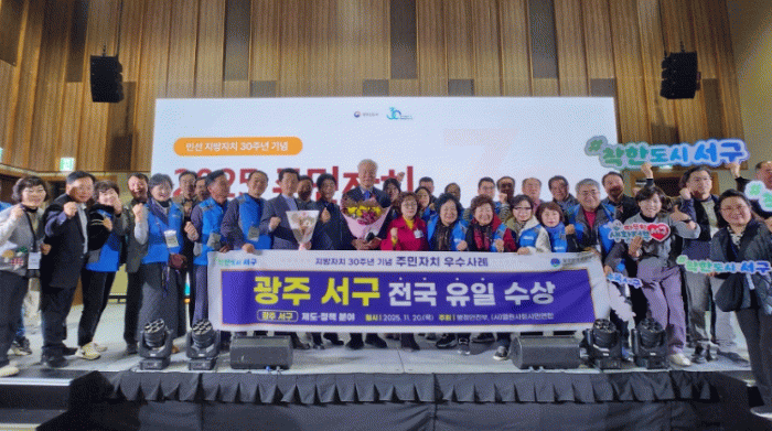 이번 공모전은 지방자치 30주년을 맞아 행정안전부와 (사)열린사회시민연합이 공동 주관한 행사로 주민자치의 우수사례를 발굴·확산하기 위해 마련됐다. 서류·인터뷰, 현장발표 심사 등 엄정한 절차를 거쳐 최종 우수사례 10건이 선정됐으며 서구는 기초자치단체 중 유일하게 두 분야에서 모두 수상하는 성과를 거뒀다.