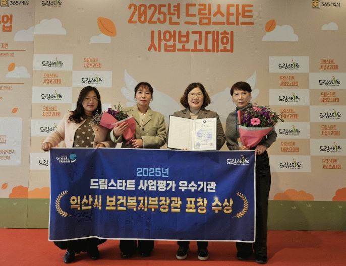 익산시는 20일 열린 '2025년 드림스타트 사업보고대회'에서 보건복지부 장관 표창을 받았다.