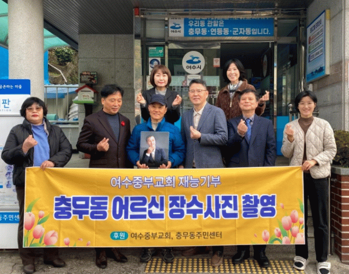조희순 충무동장은 “어르신들에게 좋은 추억을 남겨주신 여수중부교회와 심선오 작가에게 감사드리며 이런 따뜻한 관심이 충무동 주민들에게 큰 힘이 될 것”이라고 말했다.