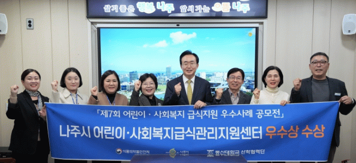 나주시는 ‘나주시 어린이 사회복지 급식관리지원센터’가 식품의약품안전처가 주최한 제7회 어린이 사회복지 급식지원 우수사례 공모전에서 우수상을 수상했다고 21일 밝혔다.