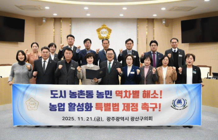 광산구의회는 윤혜영 의원(더불어민주당, 신흥동·우산동·월곡1·2동·운남동)이 대표 발의한 건의안을 통해 “대한민국 주요 대도시의 ‘동(洞)’ 지역 농민들은 정부의 농업·농촌 지원 정책에서 구조적 역차별에 직면해 있으며, 이는 농민들의 생존권과 경제적 안정에 심각한 위협이 되고 있다”고 밝혔다.