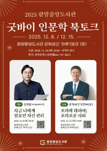 참여 신청은 11월 24일 오전 10시부터 선착순으로 진행되며, 광양시립도서관 누리집 또는 전화를 통해 신청할 수 있다.