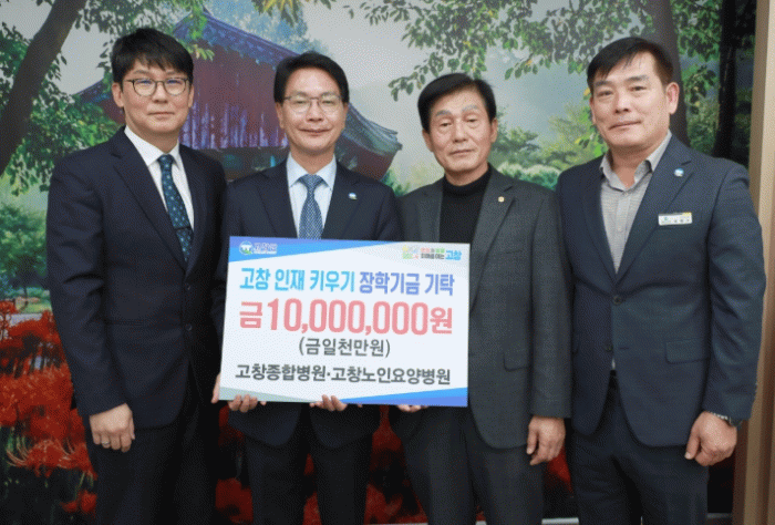 심덕섭 이사장은 “지역 발전을 위해 늘 관심과 정성을 보내주고 계신 고창종합병원에 깊이 감사드린다”라며 “기탁해주신 장학금은 투명하게 관리하여 지역 청소년들에게 소중히 전달하겠다”라고 말했다.