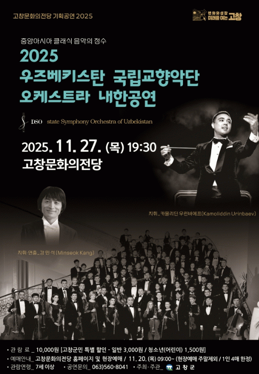 2부는 우즈베키스탄 국립음악원 총장이자 국가 최고 공훈예술가인 카몰리딘 우린바예프(Kamolidin Urinbaev)가 지휘를 맡아 고창 관객에게 전통 클래식의 깊이를 전한다.