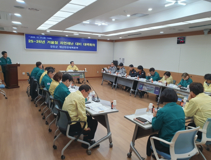 이에 따라 군은 지난 21일 본청 소회의실에서 강진군 재난안전대책본부 주관 ‘25년~ ’26년 겨울철 자연재난 대비 관계기관 및 관련부서 대책 회의를 개최했다.