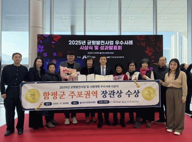 함평군은 26일 “일반농산어촌개발 권역단위종합정비사업으로 조성된 주포권역다목적센터가 지난 20일 대통령직속 지방시대위원회(위원장 김경수)가 주최한 ‘2025년 균형발전사업 우수사례 시상식’에서 행정안전부 장관상을 수상했다”고 밝혔다.