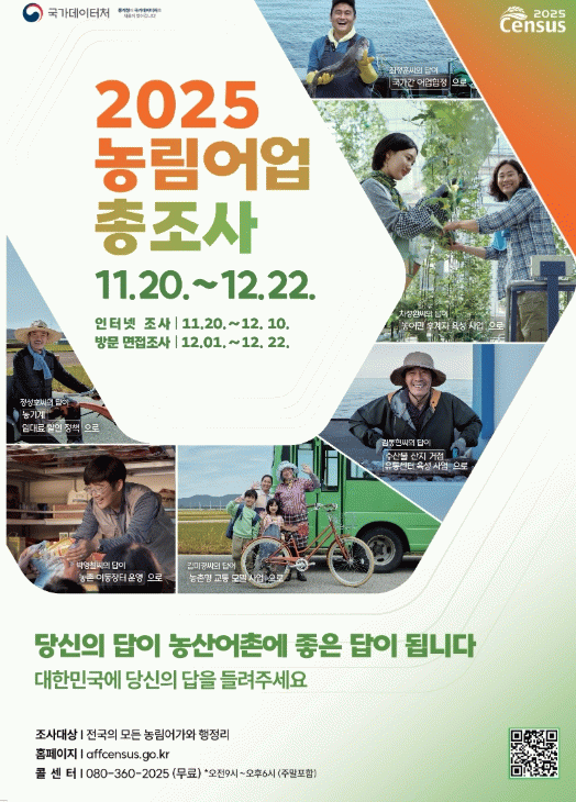국가데이터처 주관, 남원시에서 수행하는 이번 총조사는 농림어업의 규모, 분포, 경영, 종사 형태 등 133여 개 항목을 파악하여 농업정책, 스마트 농업보급, 농지관리, 농가 경영 지원 등 향후 농림어업정책 수립의 중요한 기초자료로 활용된다.
