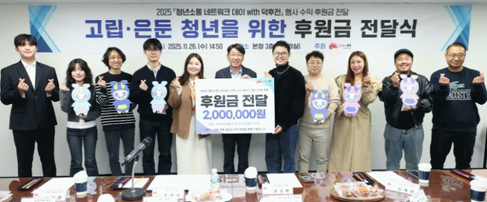 전주시는 26일 시청 3층 회의실에서 ‘2025 전주시 청년소통 네트워크 데이 with 덕후전’ 행사 운영 수익금 및 후원금을 고립·은둔 청년에게 후원하는 후원금 전달식을 개최했다.