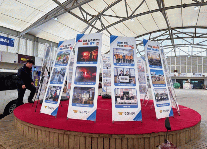 이번 전시는 겨울철을 앞두고 대국민 화재예방 분위기 조성을 강화하기 위한 취지로 마련됐으며, 도내 학생·군민이 참여한 소방안전공모전 수상작품(포스터·사진)과 함께 2025년 강진소방서의 주요 활동 모습을 담은 홍보 배너가 현장에 함께 설치됐다.