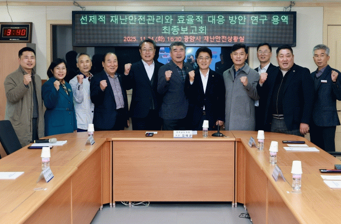 이어 강정일 대표의원은 “최근 재난은 불확실성이 높아지는 등 대형 복합재난 경향을 보이고 있어, 단발적인 접근보다는 중장기적 관점의 논의 기반을 구축해나가는 것이 중요하다”며 “연구가 일회성으로 끝나지 않도록 지속적인 피드백과 함께 용역 과제에 대한 개선 및 발전사항을 꾸준히 점검해 해당 연구의 연속성을 유지하도록 노력하겠다”고 말했다.