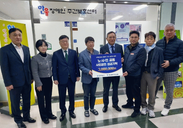 이번 행사에서는 양 기관 임직원들의 따뜻한 마음이 담긴 300만 원의 성금을 광산구 한울장애인주간보호센터에 전달하며 주변 이웃들의 포근한 겨울 나기를 기원했다.