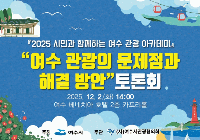 토론회에는 지역 관광업계 종사자, 관광 전문가, 시민들이 함께 참여해 여수 관광의 성장을 위해 다양한 의견을 자유롭게 표출하는 공론의 장이 될 전망이다.