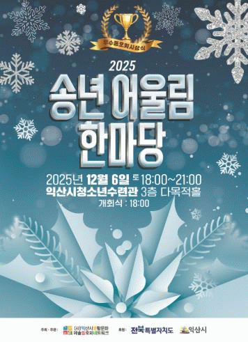 사단법인 익산시생활문화예술동호회네트워크는 오는 6일 오후 6시, 익산시청소년수련관 3층 다목적홀에서 '송년 어울림 한마당'을 개최한다.