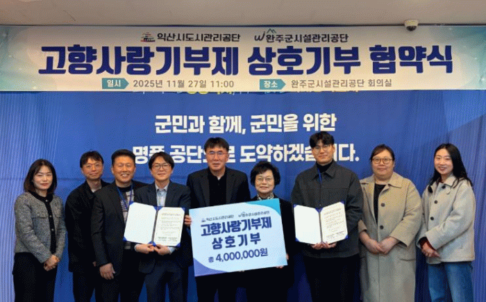 두 기관은 이번 기부를 시작으로 고향사랑기부제 활성화와 지역사회 발전을 위한 공동 협력모델을 강화해 나갈 계획이다.