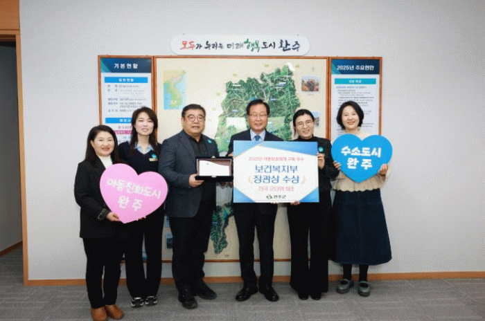 유희태 완주군수는 “이번 수상은 아동보호의 공적책임 강화를 위해 모두가 함께 노력한 결과”라며 “아동이 행복하고 안전하게 살기 좋은 아동친화도시 완주군 조성을 위해 변함없이 최선을 다하겠다”고 전했다.
