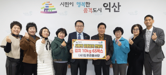 정헌율 익산시장은 "사랑이 가득 담긴 김장김치는 익산시 아동들이 건강한 겨울을 보내는 데 큰 힘이 될 것"이라며 "지역을 향한 따뜻한 관심과 사랑으로 나눔을 실천해 주신 도우리봉사단에 감사드린다"고 전했다.