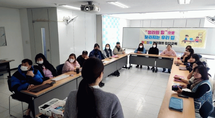 교육은 ‘앳홈 정리정돈’의 정다은 대표가 진행했으며, 정리정돈의 필요성과 효과를 이해하고 생활 속에서 바로 활용할 수 있는 분류·버리기·수납 기술, 가족과 함께하는 공간 정리법, 정리 습관화 전략 등을 다뤘다.