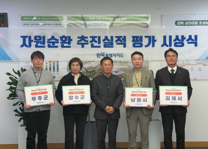 송금현 전북도 환경산림국장은 “올해의 성과는 시군이 앞장서 자원순환 문화를 확산한 결과”며, “내년에도 시군과 긴밀히 협략해 보다 앞서가는 순환경제 정책을 펼치고, 도민 참여 기반의 자원순환사회를 만들어 가겠다.”고 말했다.