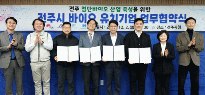 우범기 전주시장은 “전주시는 바이오산업을 미래 성장동력으로 삼고 연구개발 인프라 구축과 기업 유치에 힘써왔다”면서 “이번 협약이 기업과 도시가 함께 성장하는 출발점이 되기를 기대하며, 앞으로도 기업 활동을 적극 지원하고 전주가 첨단바이오산업의 중심 도시로 자리매김하도록 최선을 다하겠다”고 말했다.