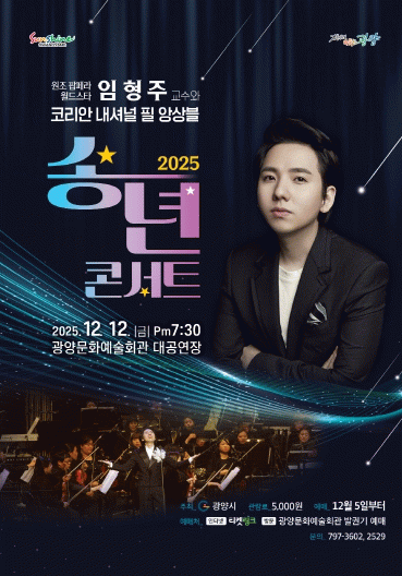 김명덕 문화예술과장은 “세계적인 명성과 실력을 갖춘 임형주 팝페라테너와 함께 한 해를 마무리하며 시민 여러분께 따뜻한 음악의 기억을 드리고자 한다”며 “2025년을 돌아보고 2026년을 힘 있게 맞이할 수 있도록 위로와 희망을 담아 무대를 준비하겠다”고 밝혔다.