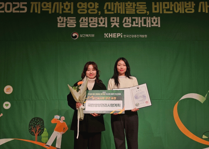 또한 통합건강증진사업으로 추진되는 비만 예방 관리와 모바일 헬스케어, 심뇌혈관질환 예방 관리 등 사업 참여자 특성에 맞는 영양교육을 제공함으로써 전반적인 영양 수준 향상과 건강생활 실천을 지속적으로 유도해 온 공로를 인정받았다.