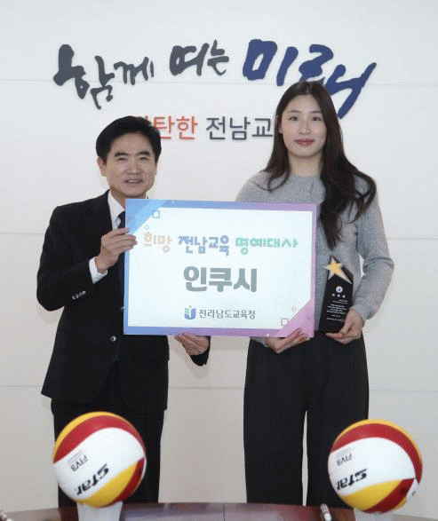 이날 위촉식에서 김대중 교육감과 인쿠시는 각각 배구공에 서명했고, 인쿠시는 서명한 자신의 유니폼을 전남교육청에 전달했다.