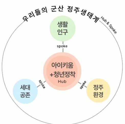 허브-앤-스포크 전략은 핵심 분야(허브)에 정책 역량을 집중하고, 주변 분야(스포크)와 연계해 효과를 극대화하는 방식으로, 군산시는 ‘아이키움’과 ‘청년정착’을 두 개의 핵심축으로 설정했다.