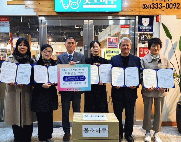이날 협약에 따라 꽃소마루 나주혁신점은 빛가람동에 소재한 지역아동센터 3개소(빛가람·빛누리·한아름)에 각각 한돈 15kg씩을 매월 후원하고 빛가람동 관내 위탁·조손가정에 방문 식사 또는 포장도 가능한 가족 외식권 3매를 지급하기로 했다.