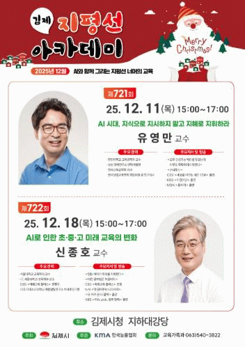 한편, 지평선아카데미 강연은 누구나 참석 가능하며, 현장 참여가 어려운 시민을 위해 경로당 IPTV를 통해 강연 영상이 실시간 송출되고, 강연 후에는 강사 동의 하에 김제시 사이버학습센터에 영상을 업로드하여 제공한다.