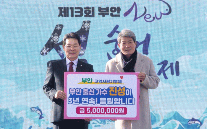 진성은 “고향 부안에서 무대에 설 때마다 따뜻한 응원과 정을 받는다”며 “그 마음에 보답하는 의미로 기부를 이어가고 있다”고 소감을 말했다.