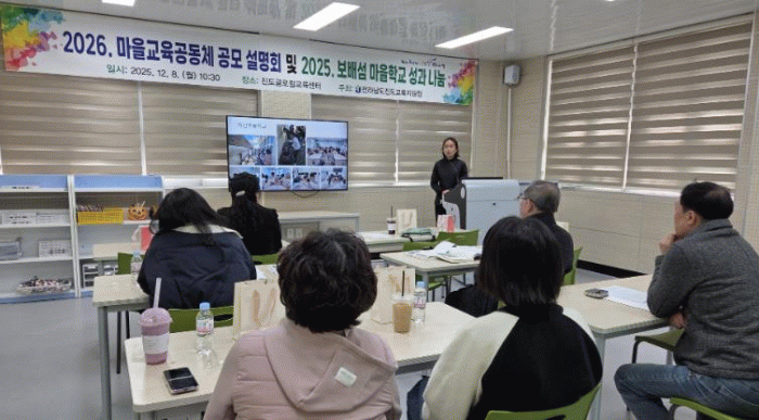 이번 행사는 진도지역 거점 마을학교인 시에그린 마을학교를 비롯해 7개의 마을학교 대표와 실무자 15여명이 참석해, 2025년 한 해 동안 운영된 다양한 교육활동 성과를 공유하고 2026년 마을교육공동체 운영 방향을 안내하기 위해 마련됐다.