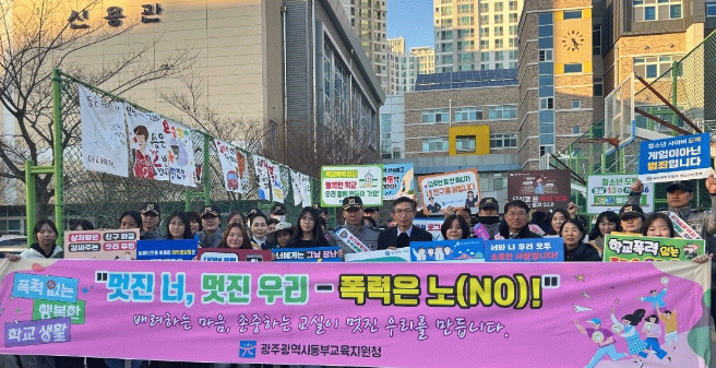 캠페인은 광주광역시교육청, 동부교육지원청, 학교, 광주경찰, 북부경찰, 북구청, 학부모 단체 등 50여 명이 참여해 현수막, 피켓, 어깨띠를 활용하여 학교폭력과 청소년 비행 예방의 중요성을 알리는 홍보활동을 전개했다.