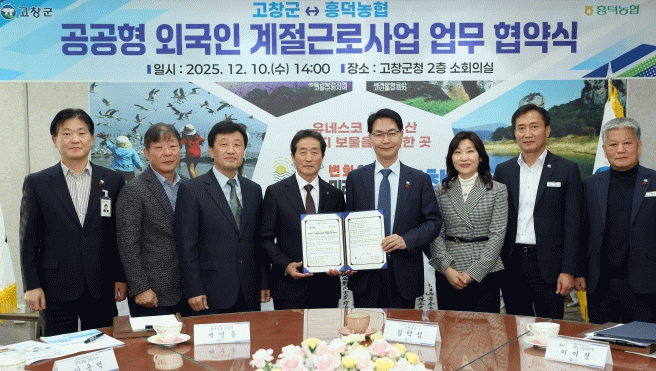 백영종 흥덕농협 조합장은 “2027년 북부권 기숙사 개소와 함께 시작되는 사업인 만큼, 북부권 농가에 숙련된 공공형 계절근로자를 안정적으로 공급해 인력난 해소에 힘쓰겠다”고 밝혔다.