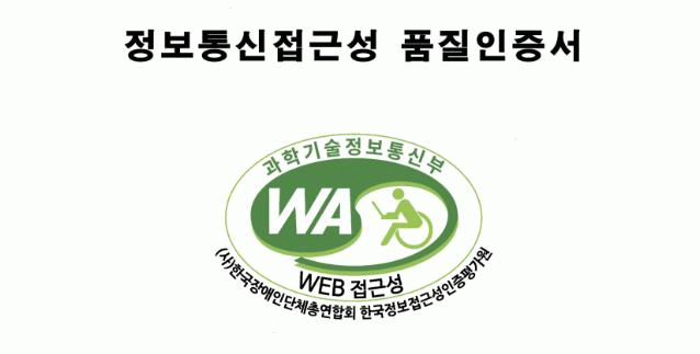 웹 접근성 품질인증 마크는 장애인과 고령자가 웹사이트에서 제공하는 정보를 비장애인과 동등하게 접근하고 이용할 수 있도록 보장하는 ‘웹 접근성 표준지침’을 준수한 우수 사이트에 대해 과학기술정보통신부에서 품질마크를 1년간 부여하는 제도다.