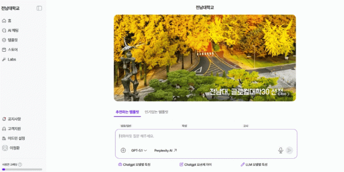 14일 전남대는 글로컬대학30 핵심 전략에 따라 전 교직원과 재학생에게 생성형 AI 8종을 15일부터 무료로 제공한다고 밝혔다. 이는 교육·연구·행정 전반에 AI를 도입해 대학 혁신을 가속화하기 위한 전략적 조치다.
