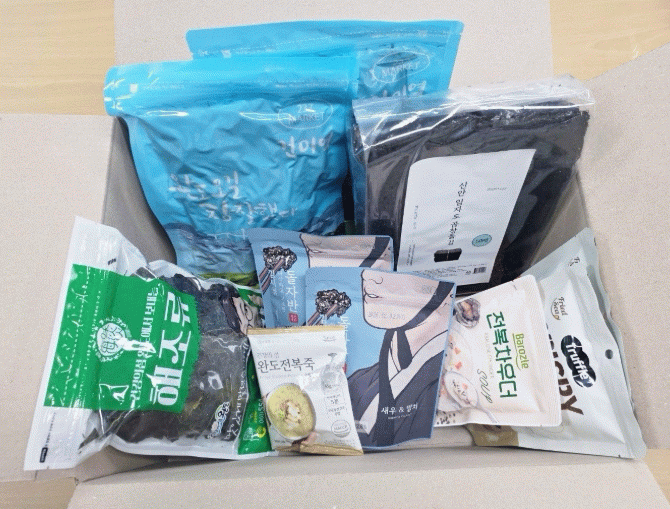 수산물 꾸러미는 전남에서 생산한 수산물 중 곱창김, 전복죽, 다시마, 미역 등 7종 4만 원 상당으로 양질의 영양식이면서도 조리하기 간편한 수산가공품으로 이뤄졌다.